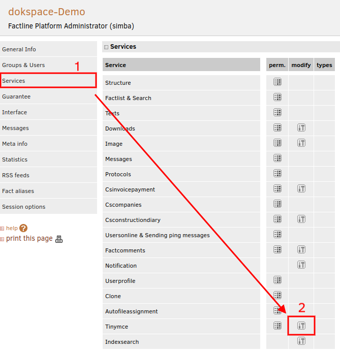 - Wählen Sie die gewünschten Plattform aus der Plattform-Liste aus und KLicken Sie dort auf den Menüpunkt "Services".